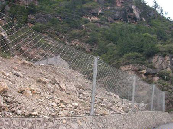 被動邊坡防護網簡介被動防護是由鋼絲繩網或環形網、(需攔截小塊落石時附加一層鐵絲格柵(錨桿、拉錨繩、基座和支撐繩.與剛性攔截和砌漿擋墻相比較,使工期和資金得到減少